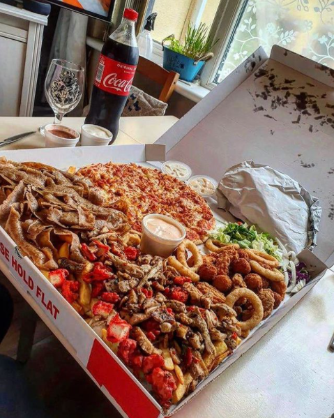 | 12″ Munch Box – Chicken Tikka, Chicken Pakora, Veg Pakora, 3 Hots Wings, Donner Kebab, Shawarma, Chips, 1 Tub of Sauce + 1 Can | £12.00 |