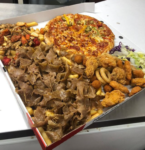 | 18″ Xtreme Munch Box – Any 12 Inch Pizza w/ 3 Toppings, Chicken Tikka, Chicken Shawarma, Chicken Pakora, Veg Pakora, Hot Wings, Donner Kebab, Onion Rings, Cheese Bites, Chicken Goujons, Chips, 2 Naan, 3 Dips, Salad + Large Drink | £30.00 |